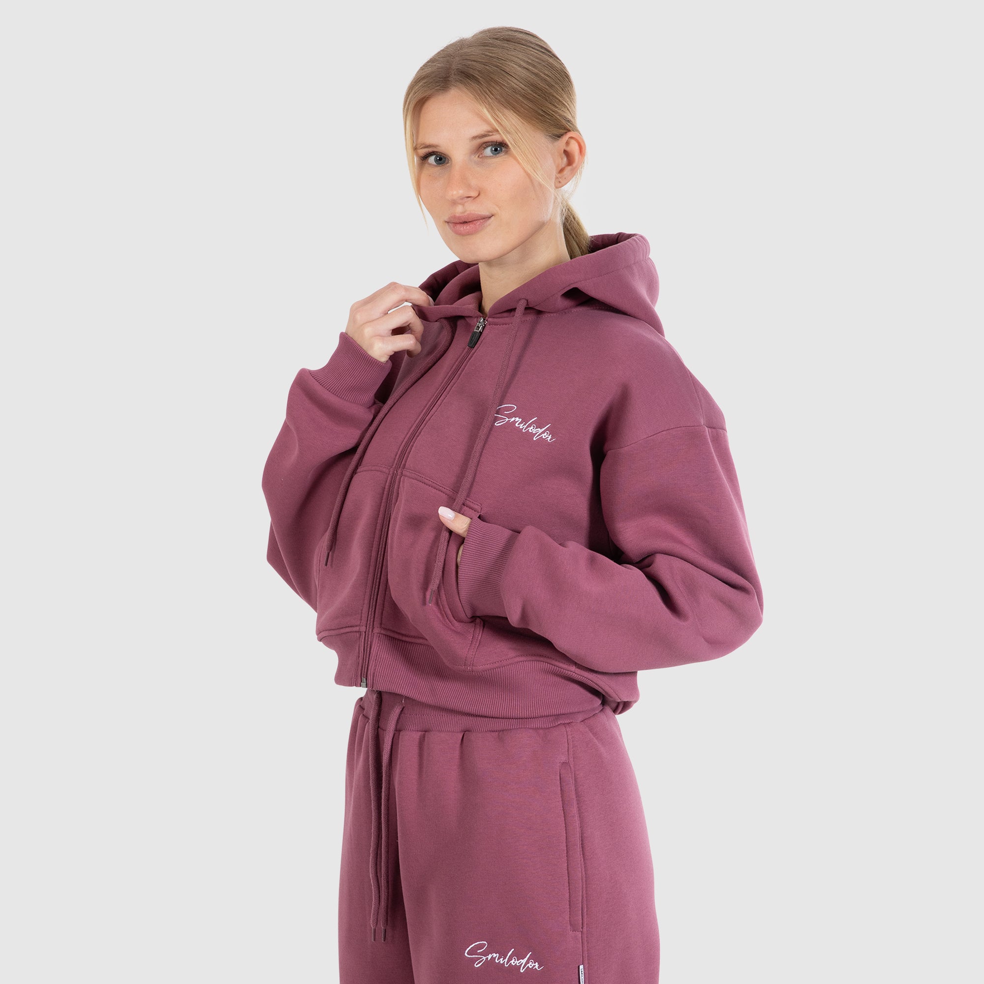 Erleben Sie den ultimativen Komfort mit dem locker geschnittenen Smilodox Zip Hoodie für Damen. Dieser Hoodie bietet nicht nur Stil, sondern auch Funktionalität durch die praktischen aufgesetzten Taschen. Die große Kapuze und der gestickte Smilodox Logo-Schriftzug verleihen dem Design eine besondere Note. Aus weichem, flauschigem Stoff gefertigt, hält er angenehm warm und bietet ein kuscheliges Tragegefühl. Bündchen an Ärmeln und Saum sorgen für den perfekten Sitz und machen den Hoodie zum idealen Begleiter für Freizeit und sportliche Aktivitäten.