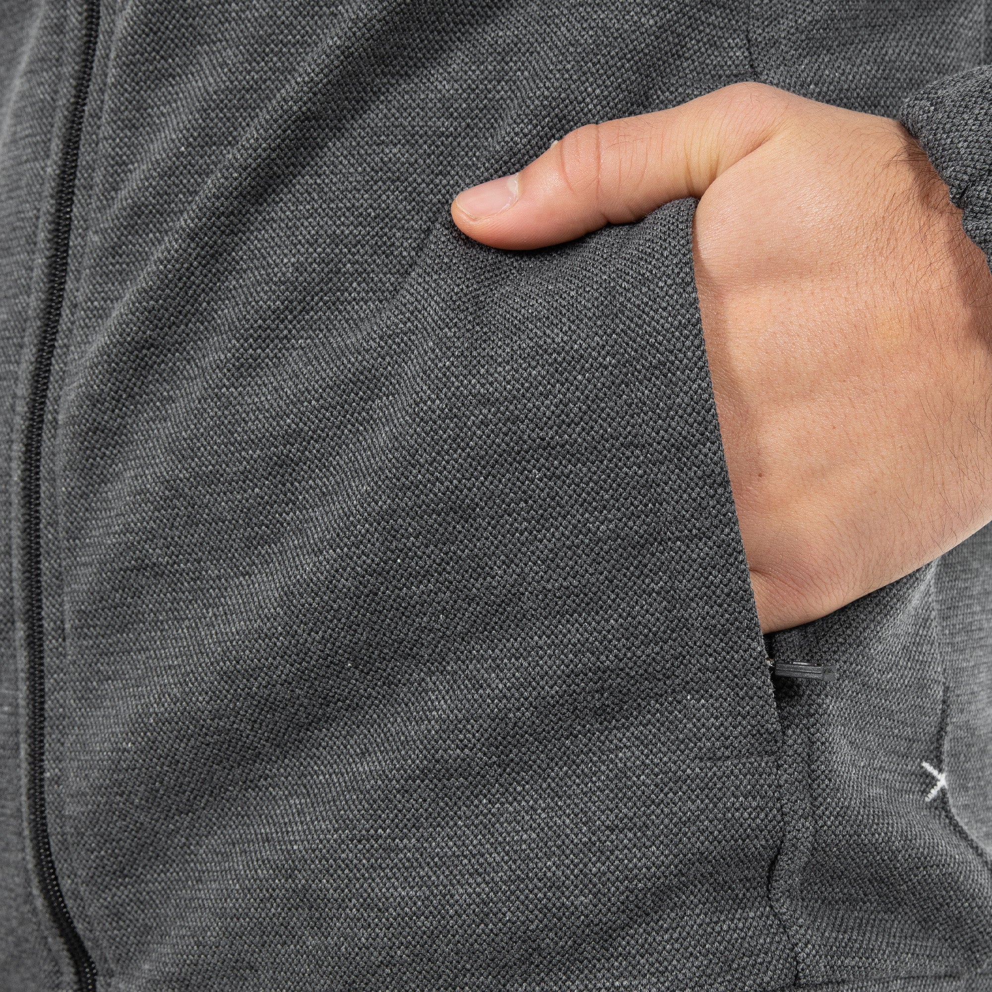 • Seitliche Eingriffstaschen mit Reißverschluss in der Teilungsnaht