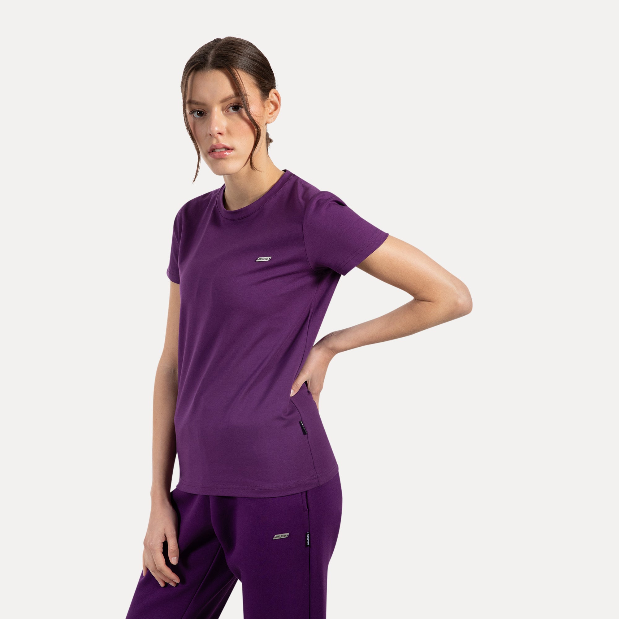 Unser Damen T-Shirt überzeugt mit einem gravierten Metallabel auf der Brust und angenehm weichem Material. Die hochwertige Verarbeitung sorgt für Langlebigkeit, während das schlichte Design mit modernem Detail vielseitig kombinierbar bleibt. Ob im Alltag oder in der Freizeit – dieses Shirt ist ein zeitloser Begleiter mit stilvoller Note.